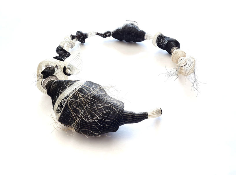 Her practice explores materials and techniques through the integration of design, craft, and art. Drawing on manual processes and traditional knowledge—such as micro basketry in horsehair learned from local women artisans—she creates works that question the boundaries between object, body, and territory. Her work has been exhibited internationally across America, Europe, and Asia.